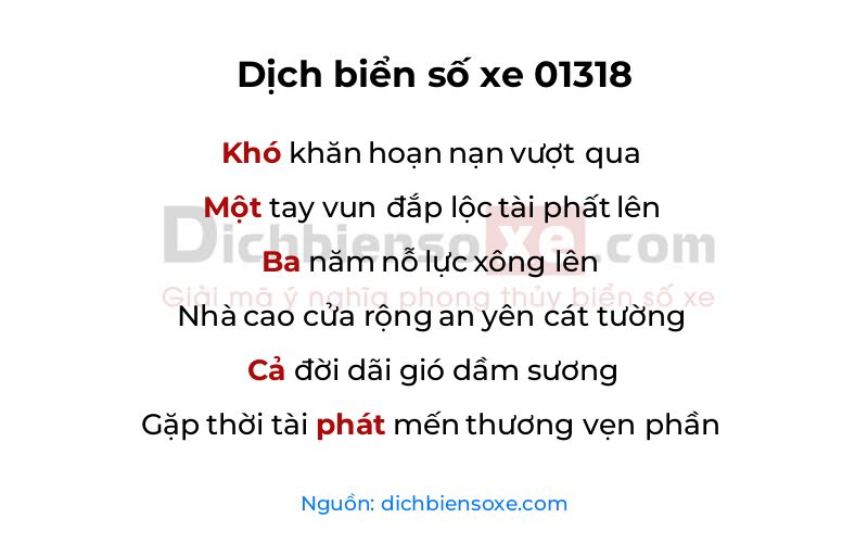 Dịch nghĩa biển số xe 01318