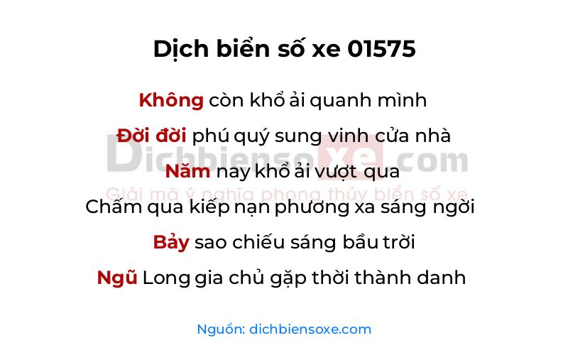 Trong 64 quẻ kinh dịch, biển số xe 01575 thuộc Quẻ Thủy Lôi Truân. Quẻ Thủy Lôi Truân có điềm “Loạn Ty Vô Đầu” – Lòng dạ rối bời, đây là một trong những quẻ Hung trong 64 quẻ kinh dịch.