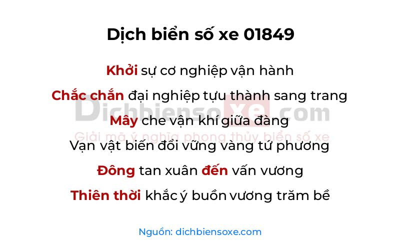 Dịch nghĩa biển số xe 01849