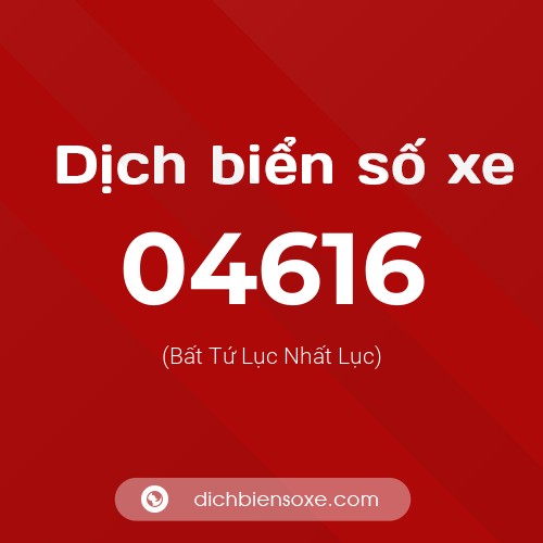 Kết luận: Biển số 04616 là biển số tốt, có ý nghĩa là Vạn sự Nhất lộc. Biển số 04616 được đánh giá là một trong những biển số có giá trị tương đối thấp.