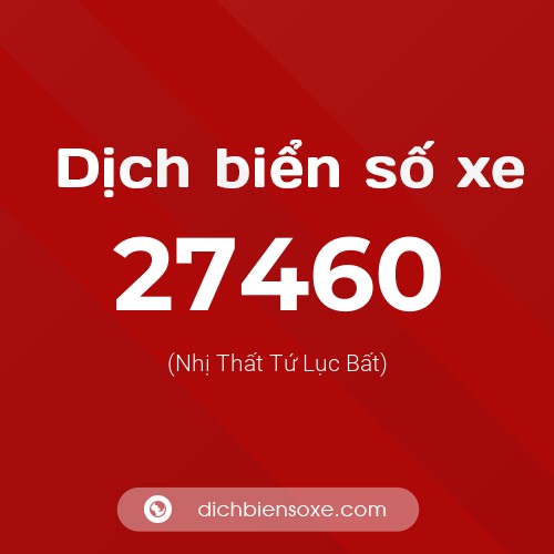 Biển số xe 27460 là biển xe có 9 nút, các con số trên biển số xe mang ý nghĩa là Thất Tứ Lục Bất, đây là biển số xe hợp với những người mang Mệnh Kim, Mệnh Hỏa. Bạn đang thắc mắc biển số xe 27460 có phải là một biển số xe đẹp, có mang lại ý nghĩa như ý cát tường cho người sở hữu nó hay không? Hãy cùng dichbiensoxe.com giúp bạn dịch rõ nghĩa của biển số xe 27460 nhé.