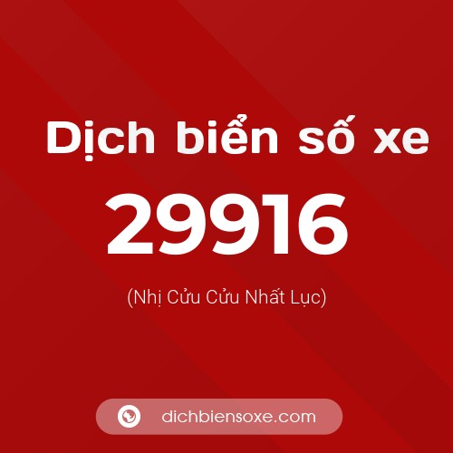 Biển số xe 29916 là biển xe có 7 nút, các con số trên biển số xe mang ý nghĩa là Cửu Cửu Nhất Lục, đây là biển số xe hợp với những người mang Mệnh Kim, Mệnh Mộc. Bạn đang thắc mắc biển số xe 29916 có phải là một biển số xe đẹp, có mang lại ý nghĩa như ý cát tường cho người sở hữu nó hay không? Hãy cùng dichbiensoxe.com giúp bạn dịch rõ nghĩa của biển số xe 29916 nhé.