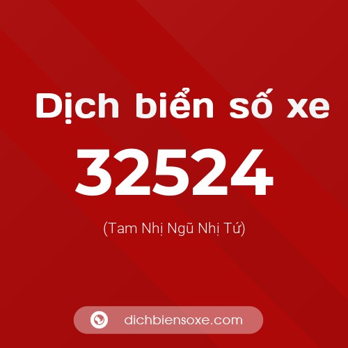 Biển số xe 32524 là biển xe có 6 nút, các con số trên biển số xe mang ý nghĩa là Nhị Ngũ Nhị Tứ, đây là biển số xe hợp với những người mang Mệnh Kim, Mệnh Mộc. Bạn đang thắc mắc biển số xe 32524 có phải là một biển số xe đẹp, có mang lại ý nghĩa như ý cát tường cho người sở hữu nó hay không? Hãy cùng dichbiensoxe.com giúp bạn dịch rõ nghĩa của biển số xe 32524 nhé.