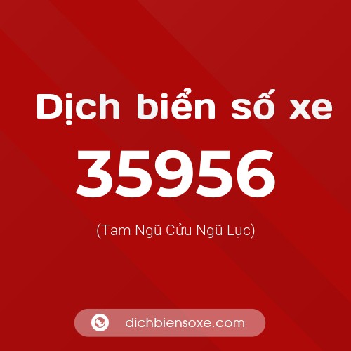 Biển số xe 35956 là biển xe có 8 nút, các con số trên biển số xe mang ý nghĩa là Ngũ Cửu Ngũ Lục, đây là biển số xe hợp với những người mang Mệnh Kim, Mệnh Mộc. Bạn đang thắc mắc biển số xe 35956 có phải là một biển số xe đẹp, có mang lại ý nghĩa như ý cát tường cho người sở hữu nó hay không? Hãy cùng dichbiensoxe.com giúp bạn dịch rõ nghĩa của biển số xe 35956 nhé.