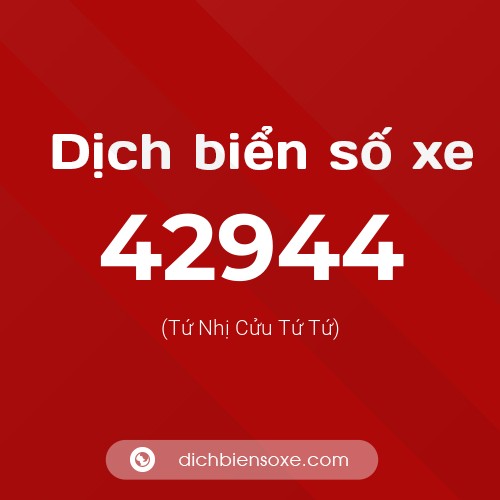 Biển số xe 42944 là biển xe có 3 nút, các con số trên biển số xe mang ý nghĩa là Nhị Cửu Tứ Tứ, đây là biển số xe hợp với những người mang Mệnh Kim, Mệnh Mộc. Bạn đang thắc mắc biển số xe 42944 có phải là một biển số xe đẹp, có mang lại ý nghĩa như ý cát tường cho người sở hữu nó hay không? Hãy cùng dichbiensoxe.com giúp bạn dịch rõ nghĩa của biển số xe 42944 nhé.