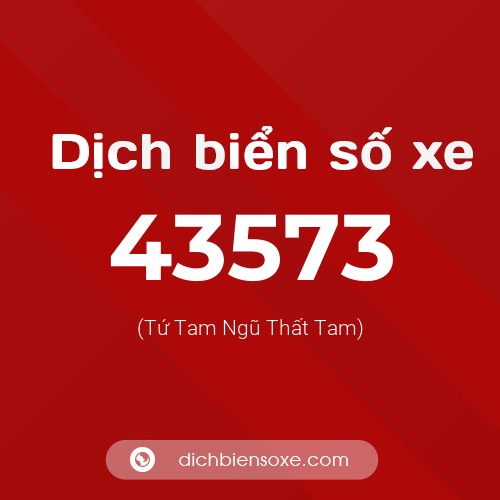 Biển số xe 43573 là biển xe có 2 nút, các con số trên biển số xe mang ý nghĩa là Tam Ngũ Thất Tam, đây là biển số xe hợp với những người mang Mệnh Kim, Mệnh Mộc. Bạn đang thắc mắc biển số xe 43573 có phải là một biển số xe đẹp, có mang lại ý nghĩa như ý cát tường cho người sở hữu nó hay không? Hãy cùng dichbiensoxe.com giúp bạn dịch rõ nghĩa của biển số xe 43573 nhé.