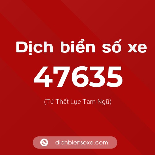 Biển số xe 47635 là biển xe có 5 nút, các con số trên biển số xe mang ý nghĩa là Thất Lục Tam Ngũ, đây là biển số xe hợp với những người mang Mệnh Kim, Mệnh Mộc. Bạn đang thắc mắc biển số xe 47635 có phải là một biển số xe đẹp, có mang lại ý nghĩa như ý cát tường cho người sở hữu nó hay không? Hãy cùng dichbiensoxe.com giúp bạn dịch rõ nghĩa của biển số xe 47635 nhé.