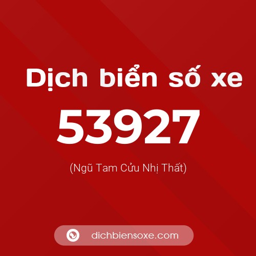 Biển số xe 53927 là biển xe có 6 nút, các con số trên biển số xe mang ý nghĩa là Tam Cửu Nhị Thất, đây là biển số xe hợp với những người mang Mệnh Kim, Mệnh Mộc. Bạn đang thắc mắc biển số xe 53927 có phải là một biển số xe đẹp, có mang lại ý nghĩa như ý cát tường cho người sở hữu nó hay không? Hãy cùng dichbiensoxe.com giúp bạn dịch rõ nghĩa của biển số xe 53927 nhé.