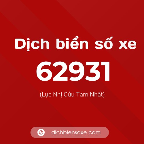 Biển số xe 62931 là biển xe có 1 nút, các con số trên biển số xe mang ý nghĩa là Nhị Cửu Tam Nhất, đây là biển số xe hợp với những người mang Mệnh Kim, Mệnh Hỏa. Bạn đang thắc mắc biển số xe 62931 có phải là một biển số xe đẹp, có mang lại ý nghĩa như ý cát tường cho người sở hữu nó hay không? Hãy cùng dichbiensoxe.com giúp bạn dịch rõ nghĩa của biển số xe 62931 nhé.