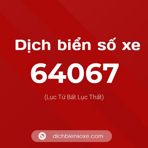 Biển số xe 64067 là biển xe có 3 nút, các con số trên biển số xe mang ý nghĩa là Tứ Bất Lục Thất, đây là biển số xe hợp với những người mang Mệnh Kim, Mệnh Mộc. Bạn đang thắc mắc biển số xe 64067 có phải là một biển số xe đẹp, có mang lại ý nghĩa như ý cát tường cho người sở hữu nó hay không? Hãy cùng dichbiensoxe.com giúp bạn dịch rõ nghĩa của biển số xe 64067 nhé.