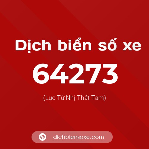Biển số xe 64273 là biển xe có 2 nút, các con số trên biển số xe mang ý nghĩa là Tứ Nhị Thất Tam, đây là biển số xe hợp với những người mang Mệnh Kim, Mệnh Mộc. Bạn đang thắc mắc biển số xe 64273 có phải là một biển số xe đẹp, có mang lại ý nghĩa như ý cát tường cho người sở hữu nó hay không? Hãy cùng dichbiensoxe.com giúp bạn dịch rõ nghĩa của biển số xe 64273 nhé.