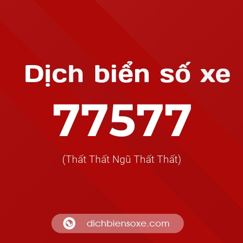 Biển số xe 77577 là biển xe có 3 nút, các con số trên biển số xe mang ý nghĩa là Thất Ngũ Thất Thất, đây là biển số xe hợp với những người mang Mệnh Kim, Mệnh Thủy. Bạn đang thắc mắc biển số xe 77577 có phải là một biển số xe đẹp, có mang lại ý nghĩa như ý cát tường cho người sở hữu nó hay không? Hãy cùng dichbiensoxe.com giúp bạn dịch rõ nghĩa của biển số xe 77577 nhé.