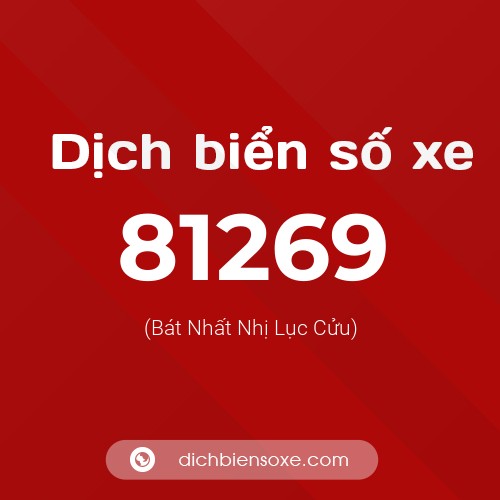 Biển số xe 81269 là biển xe có 6 nút, các con số trên biển số xe mang ý nghĩa là Nhất Nhị Lục Cửu, đây là biển số xe hợp với những người mang Mệnh Kim, Mệnh Mộc. Bạn đang thắc mắc biển số xe 81269 có phải là một biển số xe đẹp, có mang lại ý nghĩa như ý cát tường cho người sở hữu nó hay không? Hãy cùng dichbiensoxe.com giúp bạn dịch rõ nghĩa của biển số xe 81269 nhé.