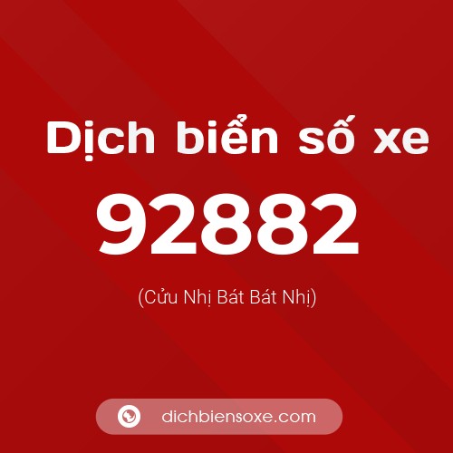 Biển số xe 92882 là biển xe có 9 nút, các con số trên biển số xe mang ý nghĩa là Nhị Bát Bát Nhị, đây là biển số xe hợp với những người mang Mệnh Kim, Mệnh Mộc. Bạn đang thắc mắc biển số xe 92882 có phải là một biển số xe đẹp, có mang lại ý nghĩa như ý cát tường cho người sở hữu nó hay không? Hãy cùng dichbiensoxe.com giúp bạn dịch rõ nghĩa của biển số xe 92882 nhé.