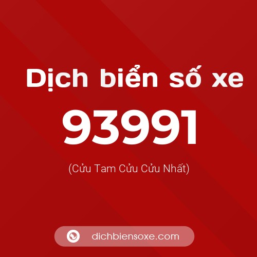 Biển số xe 93991 là biển xe có 1 nút, các con số trên biển số xe mang ý nghĩa là Tam Cửu Cửu Nhất, đây là biển số xe hợp với những người mang Mệnh Mộc, Mệnh Hỏa. Bạn đang thắc mắc biển số xe 93991 có phải là một biển số xe đẹp, có mang lại ý nghĩa như ý cát tường cho người sở hữu nó hay không? Hãy cùng dichbiensoxe.com giúp bạn dịch rõ nghĩa của biển số xe 93991 nhé.