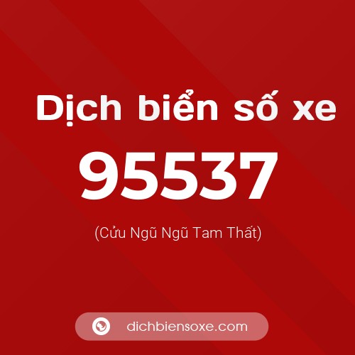 Biển số xe 95537 là biển xe có 9 nút, các con số trên biển số xe mang ý nghĩa là Ngũ Ngũ Tam Thất, đây là biển số xe hợp với những người mang Mệnh Kim, Mệnh Mộc. Bạn đang thắc mắc biển số xe 95537 có phải là một biển số xe đẹp, có mang lại ý nghĩa như ý cát tường cho người sở hữu nó hay không? Hãy cùng dichbiensoxe.com giúp bạn dịch rõ nghĩa của biển số xe 95537 nhé.