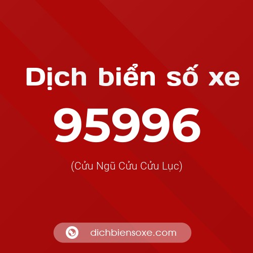 Biển số xe 95996 là biển xe có 8 nút, các con số trên biển số xe mang ý nghĩa là Ngũ Cửu Cửu Lục, đây là biển số xe hợp với những người mang Mệnh Kim, Mệnh Mộc. Bạn đang thắc mắc biển số xe 95996 có phải là một biển số xe đẹp, có mang lại ý nghĩa như ý cát tường cho người sở hữu nó hay không? Hãy cùng dichbiensoxe.com giúp bạn dịch rõ nghĩa của biển số xe 95996 nhé.