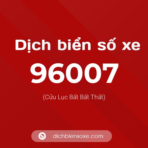 Biển số xe 96007 là biển xe có 2 nút, các con số trên biển số xe mang ý nghĩa là Lục Bất Bất Thất, đây là biển số xe hợp với những người mang Mệnh Kim, Mệnh Mộc. Bạn đang thắc mắc biển số xe 96007 có phải là một biển số xe đẹp, có mang lại ý nghĩa như ý cát tường cho người sở hữu nó hay không? Hãy cùng dichbiensoxe.com giúp bạn dịch rõ nghĩa của biển số xe 96007 nhé.